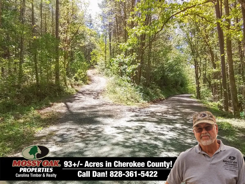 93.2+/- Acres Surrounded by USFS! The only neighbor is a primative church and a cell tower that produces an annual income, plus underground electric is now up to the flat ridge so you can take it from there! There is over a half of mile of mountain creek that runs through a lot of usable acreage. This is a hunters dream come true. The cell tower is T-mobile so you can have very good service there. Very short walk through USFS to Lake Apalachia too! Call Dan Adams 828 361 5422