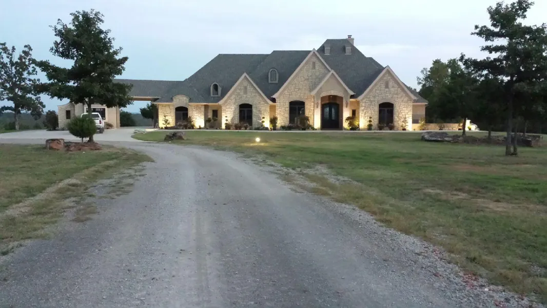At a height of 850 ft overlooking the east central Oklahoma hills, this outstanding custom home is located on the southeast corner of Cherokee county on 70 acres, with approximately 30 acres cleared, treed, golf course like land surrounding the home, and another 40 acres of wooded property. The property has two valleys, that if dammed, would provide a lake of approximately 15 acres in a gorgeous setting with a resort like atmosphere.