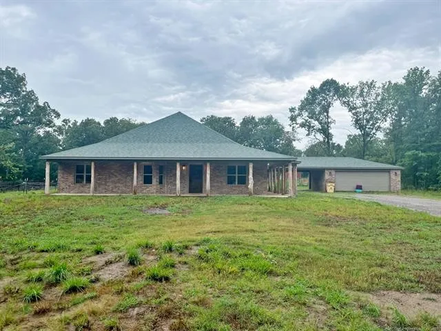 A hunter's dream! This custom built 2,632 sq ft (per CH), 4 bed, 2 bath home sits on 110 acres of that adjoins wildlife management land! Chef's kitchen, huge pantry, breakfast nook, luxury owner's suite, gigantic walk-in closet, and high ceilings! Outside features include wraparound porch, horse barn, ponds, 300' gun range, deer stands, and food plots! House is hidden from the main road by huge trees making it secluded and perfect for privacy!