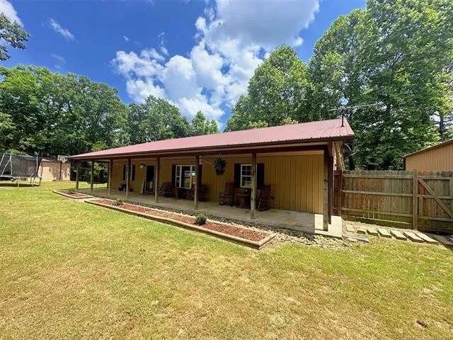 Discover your dream home nestled in a serene and private setting! This Ranch Style 2700 sq ft, low-maintenance home offers an exceptional combination of comfort, style, and tranquility. With an all-metal exterior, including a metal roof and Trex decking, this home is built to last and requires minimal upkeep! Welcome your guests on the huge covered front porch, where they will immediately feel the peacefulness of this secluded oasis. Step inside and be amazed by the spaciousness of this 4 bedroom, 3 full bath home. The oversized bedrooms provide ample space for relaxation and personalization, while two of the bedrooms boast private baths and oversized closets, creating luxurious suites. Thoughtfully designed open floorplan, perfect for entertaining friends and family. The large den, complete with a gas log fireplace, invites cozy evenings and warm conversations. Host memorable dinner parties in the spacious dining room, and prepare delicious meals in the large kitchen featuring an abundance of counter space and cabinets, accompanied by a convenient walk-in pantry. Need a place to work or study? This home has you covered with a designated office space. The formal living room provides an additional area for relaxation or entertaining. Immerse yourself in nature on over 600 sq ft of deck, where you can savor the beauty of the heavily wooded 5.75 acre property. Whether you're an outdoor enthusiast, an avid hiker, or a bow hunter, this property offers endless opportunities for adventure and exploration. Tucked away off the beaten path, this peaceful retreat guarantees a quiet and serene lifestyle. Escape the hustle and bustle of the city and embrace the tranquility of country living without sacrificing convenience. Make this beautiful home your sanctuary and enjoy the best of both worlds. Don't miss out on this exceptional opportunity to experience the harmonious blend of luxury, comfort, and natural beauty that awaits you in this remarkable home!