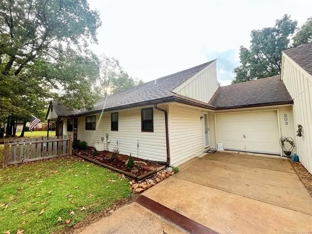 Middle unit of triplex in the beautiful Sparrow Hawk Mountain! 2 bedrooms with large closets or 1 bedroom with a loft. Windows allow for tons of natural light making the home bright with an open and spacious layout! 1 car garage with laundry hook ups, washer, dryer, and fridge included! patio and koi pond in the back yard along with a green house frame to start your garden! Fully stocked kitchen with everything you need! Perfect for a college student, young family starting out, someone looking for a new beginning, or a vacation home! New carpet! Investors, rent this out to long term tenants or add a river airbnb to your portfolio! Private river access! Park like setting with tons of friendly wildlife! Enjoy all the area has to offer such as, floating, kayaking, canoeing, camping, fishing, hiking, and more! Only 20 minutes to Tahlequah! All furniture and decor stay for your convenience of...