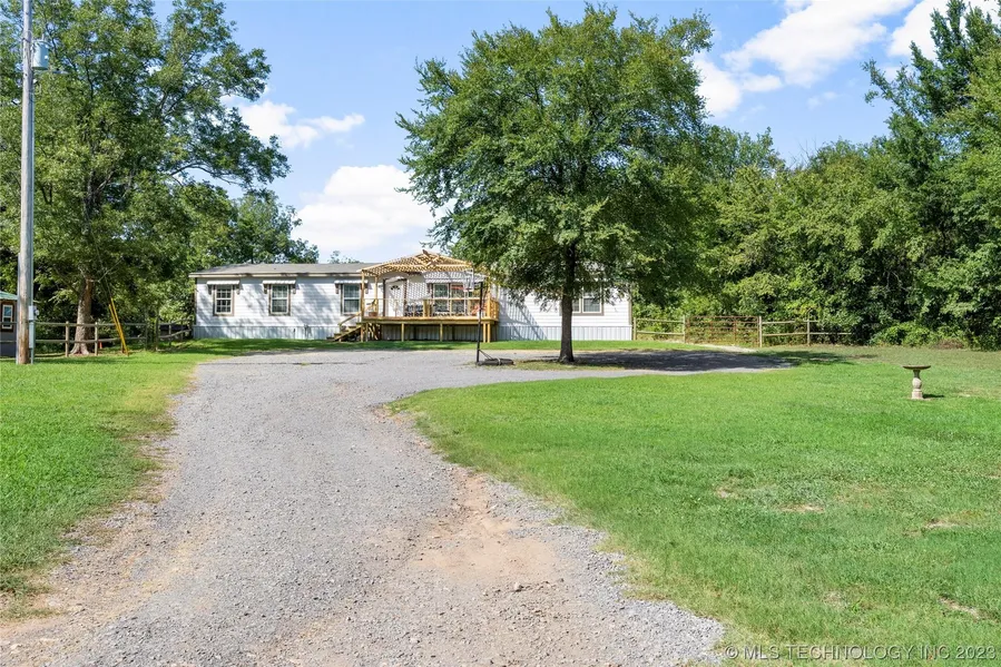 Just 8 minutes from Sequoyah State Park, Paradise Cove and golf. This 2020 manufactured home has 2,400 sq ft of living space, four bedrooms, and two full bathrooms. Two large separate living areas are perfect for entertaining year-round: a large open kitchen with plenty of storage and a large granite island with available storage. The front deck is spacious and has ambient lighting, there is an above-ground pool, an insulted building for storage or whatever your heart deists. All this on two-acres m/l; bring your animals, NO HOA.