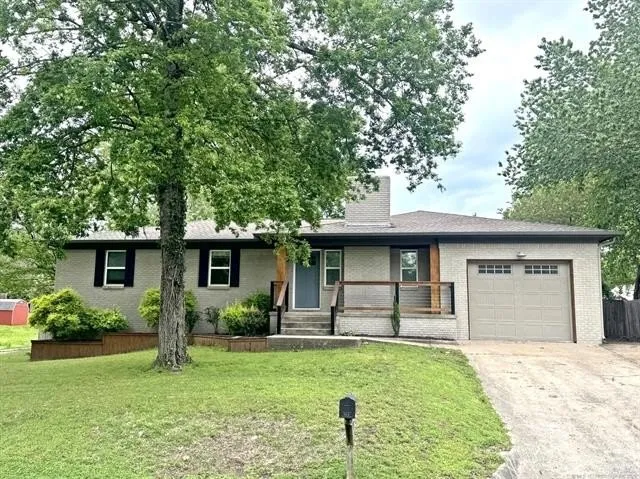 Beautifully Renovated Home in the Heart of Tahlequah! Welcome to this stunning 4-bedroom, 3-bath home that offers space, style, and convenience for every lifestyle. Completely renovated in 2018 and over 2,000 sq ft (per CH), this thoughtfully updated residence features a second living area, two bedrooms with en-suite, modern finishes, and an ideal layout for both entertaining and everyday living. As you approach, you'll be greeted by a clean, modern exterior with cedar-wrapped posts, custom shutters, and a charming porch railing that sets the tone for what’s inside. Step through the front door and onto durable wood-look tile flooring that flows seamlessly throughout the home with newer carpet in bedrooms, combining warmth with low-maintenance living. The bright and open kitchen, bathrooms, and utility room are outfitted with sleek modern cabinetry, granite countertops, and custom tile work. Each bedroom offers generous closet space, complete with built-in storage systems to keep things organized. The main living room centers around a cozy wood-burning stove, while the spacious second family room is a true showstopper—with vaulted ceiling, cedar beam accents, two walls of sunlit windows, and direct access to the large backyard deck. Between the kitchen and garage, the utility room doubles as a smartly designed drop zone, complete with a sink, laundry area, and additional cabinetry. From here or the family room, step outside to a large deck overlooking a spacious fenced backyard. A second private deck, accessible from the primary suite, leads to a cross-fenced section—perfect for pets, gardening, or added privacy. Located just minutes from downtown Tahlequah or the Illinois River and only a few blocks from the new Mission Park with walking trails, this home offers the perfect blend of location, comfort, and modern design.