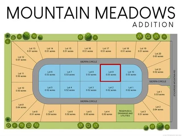 Looking for a large flat lot? Phase 1 of Mountain Meadows is Tahlequah's newest premier subdivision! .53 acre lot, underground electric, natural gas, fiber optics internet, paved roads & covenants w/ minimum 1500 SF. Will build to suit! Call for floorplans today! Builders Welcome!!
