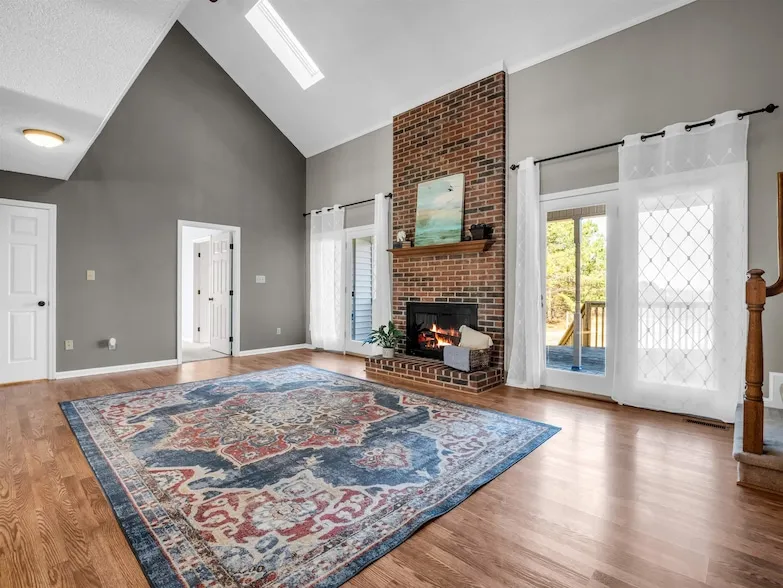 Located in a peaceful setting yet close to modern conveniences, this home is one-of-a-kind. This beautiful 4BR/3BA partially brick home has loads of amenities. ***Well equipped eat-in kitchen which includes island, walk-in pantry, tile backsplash and stainless appliances. It has an energy efficient and safe induction range cooktop and even the refrigerator remains. ***The 2-story family room is stunning with its focal point being the floor to ceiling brick real wood burning fireplace and 2nd level walk-way overlook. There is a formal dining room near the kitchen. ***The Master BR is on the main level. It is large with lots of windows and has a nice walk-in closet. Master BA has double vanities, stand-up shower, jacuzzi tub and skylights for natural light. Another bedroom is downstairs with its own full bath. Would make a nice guest room or home office. ***Upstairs are 2 additional bedroo...