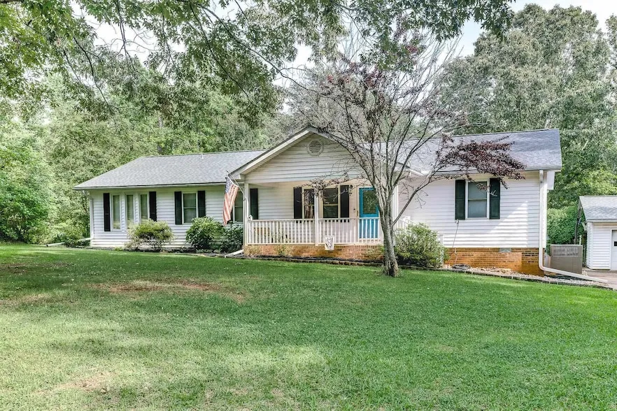 This wonderful 3BR/2BA home sits on 2.62 acres with 2 detached garage/shops and parking for your RV. Very nice house with good curb appeal. The living room has a gas log fireplace. The kitchen has ample storage and the appliances stay including refrigerator, stove and dishwasher. There is a big room off kitchen that could serve as a flex room or possible sunroom. Off the flex room is a huge screened in back porch and a smaller private deck. Also next to the kitchen is a private family room with walk-in laundry that could also serve as exercise room, home school area or even a guest bedroom. The Master BR has its own walk-in closet and private bath. The other 2 bedrooms are on the opposite end of the house sharing the 2nd full bath. All bedrooms have updated laminate floors (no carpet in the house). The back yard is fenced with multiple access gates and the view is gorgeous with abundant ...