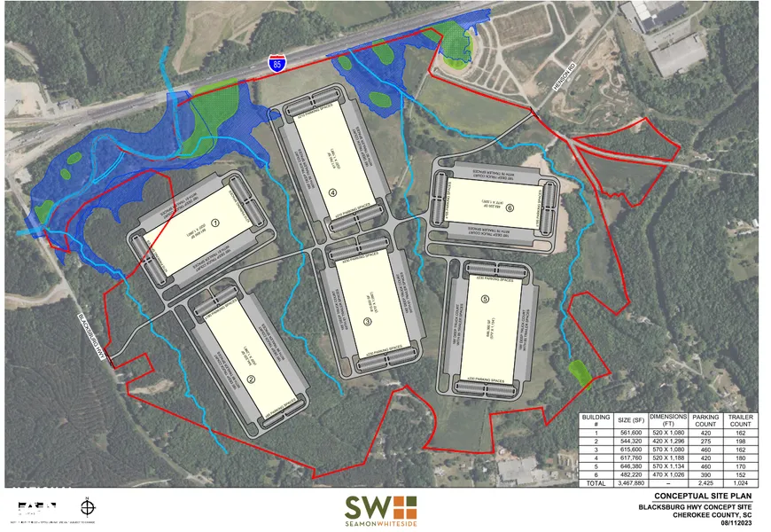 This 415 +/- acre development opportunity located in Blacksburg, SC is one of the top development sites in Cherokee County. The site is currently operating as a cattle farm so its mostly cleared land. Public water and sewer accessible. The property, which lies within an Opportunity Zone, features 3,000 feet of frontage on I-85 between Exits 100 & 102 and over 2 miles of paved road frontage. Located halfway between Greenville (55 +/- miles) and Charlotte (45 +/- miles), this site is perfect for a variety of commercial and industrial development opportunities. There is a large capacity sewer line that is going to be installed directly adjacent to the site which will greatly increase the development potential. This property is in the path of progress and the area is ripe for economic growth. Don't miss out on an amazing investment opportunity! Call today to schedule a tour!