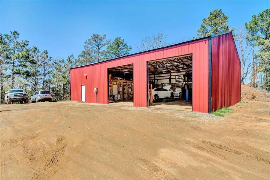 Great opportunity to have your own auto repair business and to live on-site with new loop to possibly come in front or behind or make into full-time living barndominium with shop. 1 BR unfinished apartment with finished office and 1 full finished bathroom. 40 X 60 insulated metal building on slab built in 2016 with 1/2" plywood, 12" centers on ceiling and 2 X 4 walls on 16" centers. Floored storage area above office and apt. RV hookups on site. Conventional septic installed 2017. Two outside water faucets. Blue vehicle lift, outside A/C unit w/heat pump never used, and 20' container on side of building are negotiable. Split unit heat and air in office and electric heater in bedroom. Bullard address inside Cherokee County with very low taxes, only $844 for 2020. Call today before it's gone!