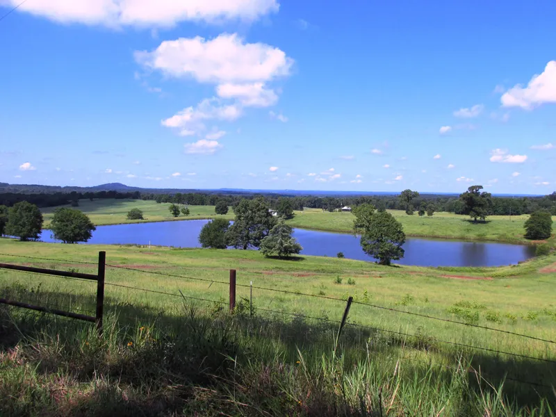 125 acre tract in Cherokee County. Beautiful rolling hills with 8 acre and 2.5 acre lakes. Scattered large trees as well as some wooded spots. Live running, tree lined creek. Pastures coastal and native grasses. Could be used for hunting, cattle or leisure ranch. 20 x 40 metal storage on pier and beam with front porch and overhang on other sides.