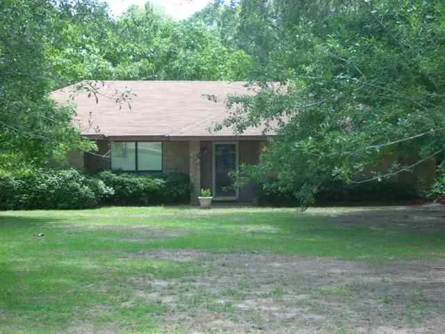 Wonderful country home w/small acreage (4+) Brick 2 or 3 bdrm w/2 full baths, 2 car carport. Tiled flooring, open LR & kitchen, workshop on slab that includes window unit & WBFP stone. Property all fenced with metal fencing. Pretty trees include peach, pear, apple & musk. grape vines. Curtains are negociable. Dog named Yorkie will not bite.