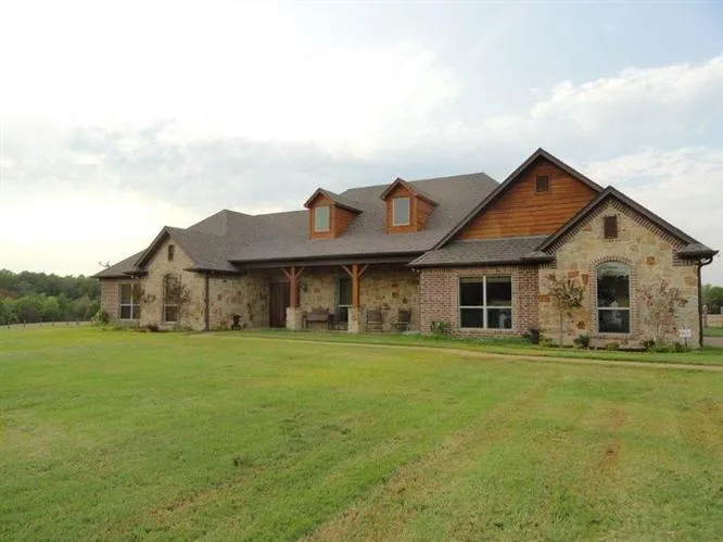 This ranch is one of a kind offering over 140 acres, 3 ponds, workshop/partial living qtrs, metal barn, pavilion, and 2B1B guest home. Main hs consists of bric/stone, 3 or 4 bdrms, LR - kitchen overlooks gorgeous pasture & pond. Tile, hardwood flooring, textured walls, beam ceiling in LR with build ins for entertainment equipment, stone gas fireplace. Kitchen has tile countertops & backsplash w/huge pantry, dbl ovens, water spicket above gas stovetop. Trash compactor, tons of storage, & island. Oversized master bdrm w/indirect lighting and dbl door into master bath. Separate glass shower and jac tub, sep sinks,
