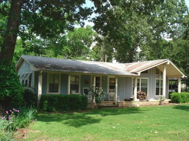 REDUCED!!! ADORABLE 2/2 home with a vintage feel but from the 1980's located just out of Troup, TX. The guesthouse could serve as a 3rd bedroom with 1/2 bath OR home could easily be added onto. The LARGE FRONT PORCH AND the 24 x 32 foot covered patio in the back offer lots of space for relaxing and enjoying nature. COMFORTABLE FAMILY ROOM has lots of windows, a FIREPLACE and HIGH CEILINGS. The CUTE KITCHEN has tile countertops, plenty of cabinets and a QUAINT ANTIQUE GAS STOVE which works great. For visiting guests, put them in the 440 square foot GUESTHOUSE with bedroom, living area, and 1/2 bath with mini fridge. The 24 x 36 foot METAL BARN gives lots of room for parking your tractor or other lawn equipment AND has an enclosed WORKSHOP. In addition, there is a full RV hookup. The 8+ acres is lovely and mostly level with lots of scattered trees. You just have to see it.