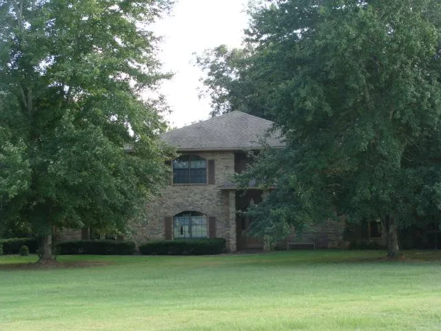 SUCH A FINE HOME on a very pretty treed setting on the edge of town. Beautiful two-story brick on gently rolling 3.75 acres w/ large shade trees and a huge covered back porch overlooking the land. Master bedroom w/ master bath is downstairs. Large family room has vaulted ceiling and wood-burning fireplace. Lots of built-ins. A very pleasing residence. 32' x 14' stable & 20' x 10' storage building.
