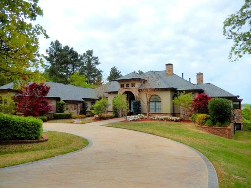 Exquisite water view home with panoramic views of Lake Palestine! Located in Eagle's Bluff, a gated waterfront golf course community, this approximately 10,100 sq. ft. home has 5 bedrooms, 5.5 baths, w/ gorgeous lake views, soaring ceilings w/ extensive moldings, 4 WBFP, executive office, sauna, indoor hot tub, game room w/mini kitchen, theater & more! Living, dining, gourmet kitchen (opening to family room w/WBFP), & master suite are located on main level & open to the glass walled sun room w/WBFP. The kitchen has custom cabinetry, Thermador appliances, island & curved breakfast bar. Three guest bdrms, office & 2.5 baths and office are also located on this level. Lower level walkout basement welcomes you w/ soaring ceilings, game room/living area w/WBFP, kitchenette, exercise room, sauna, large hobby/craft space, add'l living area, built-in cabinetry with large wine refrigerator, state ...