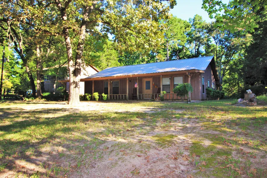 2BR/2BA frame house with metal roof has a detached 1BR/1BA garage apartment. This home is located on 15 +/- mostly wooded acres with a small pond at the front of the property. Covered front porch runs the length of the house and a wooden deck along the back. There is a deck built next to garage with wooden benches for you to sit and enjoy the wildlife and the natural beauty of east Texas.