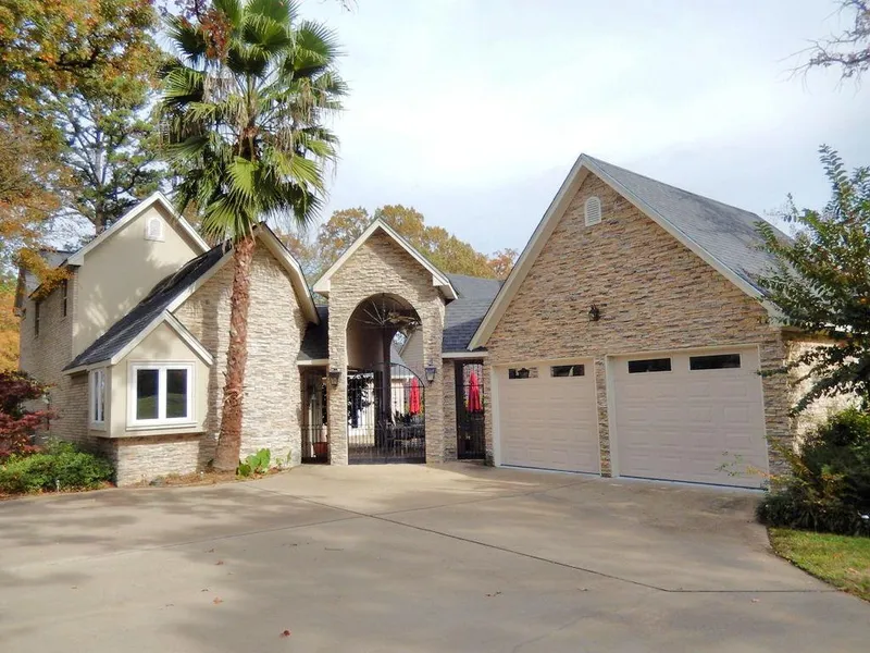 Incredible custom luxury home on golf course in Eagle's Bluff at Lake Palestine! From the arched entry with iron gate flanked by gas lights leading to the private courtyard with fountain & outdoor cooking area, to the beautiful wood beams & vaulted ceiling with gorgeous wood paneling & wainscoating surrounding the floor to ceiling stacked stone WBFP & walls of windows, this one owner home was lovingly designed & maintained. Built in 2006 with 2795 sq. ft. heated & cooled and 4300+ sq. ft. under roof, 3 bedrooms, 2 full baths & 2 half baths. Built-in bar connects living area to dining & kitchen. The kitchen has a vaulted ceiling and skylights creating a great open space to entertain family & friends. The island comfortably seats 4 and houses lots of storage and the 6 burner gas range. Master Suite is located on main level and has French doors that open to the covered porch and view of the...