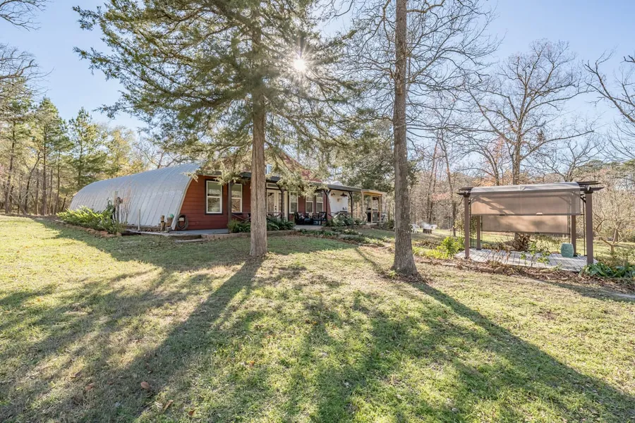 Fabulous opportunity for a hunting property with updated metal quonset hut 2BR/2BTH home on 35.1 acres in Jacksonville with mineral rights! Quonset hut is 2400SF with 1216SF heated and cooled and remainder as shop and garage with 2nd story storage area. YES, you can get financing and insurance! Property is currently under conventional loan with Rocket Mortgage and insured with State Farm. 100% MINERALS CONVEY! Gorgeous interior with lofted ceiling, electric fireplace, covered front porch, quartz countertops and pull-out drawers with soft close features in kitchen. Refrigerator, washer and dryer convey! Viking double oven , 6 burners and griddle with gas! Fabulous master bath with walk-in shower and quartz countertops as well as guest bath with soaking tub and quartz countertops. Tractor shed, chicken coop, and goat pen. She-shed or craft room. Creek with newer bridge and ATV trails throu...