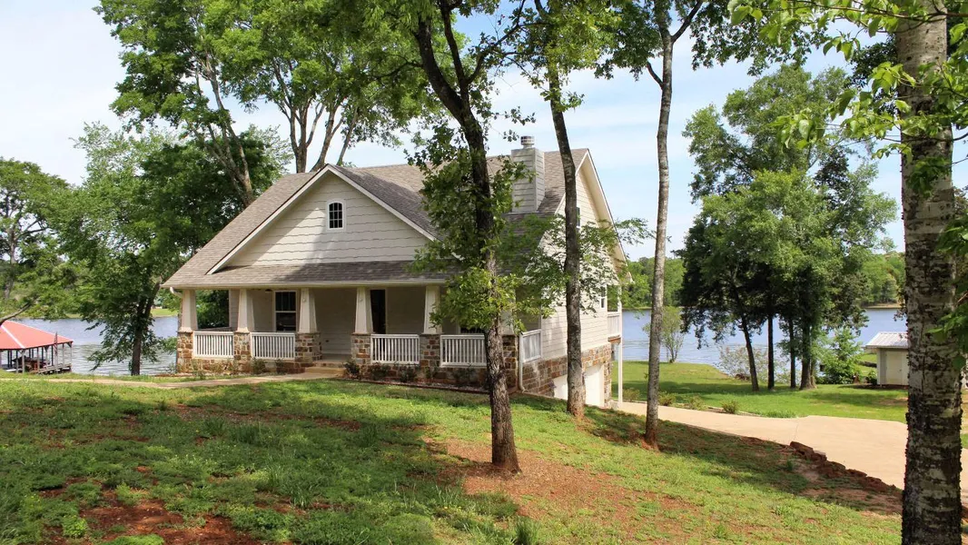 If you have seen this waterfront home on the market before, come look again! Fresh paint inside and out, landscaping, sprinkler system, circle driveway, and more have been added! Great opportunity to own a like new waterfront home in a beautiful area on Lake Palestine! Spend your time fishing and relaxing at this beautiful lake in the Piney Woods of East Texas, only 1.5 hours from Dallas TX. Built in 2015, this 2181 sq. ft. home has 4-5 bedrooms, 3.5 baths, 2 car garage and carport! Three levels with master bdrm/bath & utility room on main level. Open living/dining/kitchen with fireplace & tile floors provides great space to entertain. Kitchen has large island with breakfast bar. Upper level has 2 bedrooms + office/exercise room OR 3 bedrooms, with bath & living area. Guest suite/game room on lower level with access to back porch & lake activities through double french doors. Front porch...