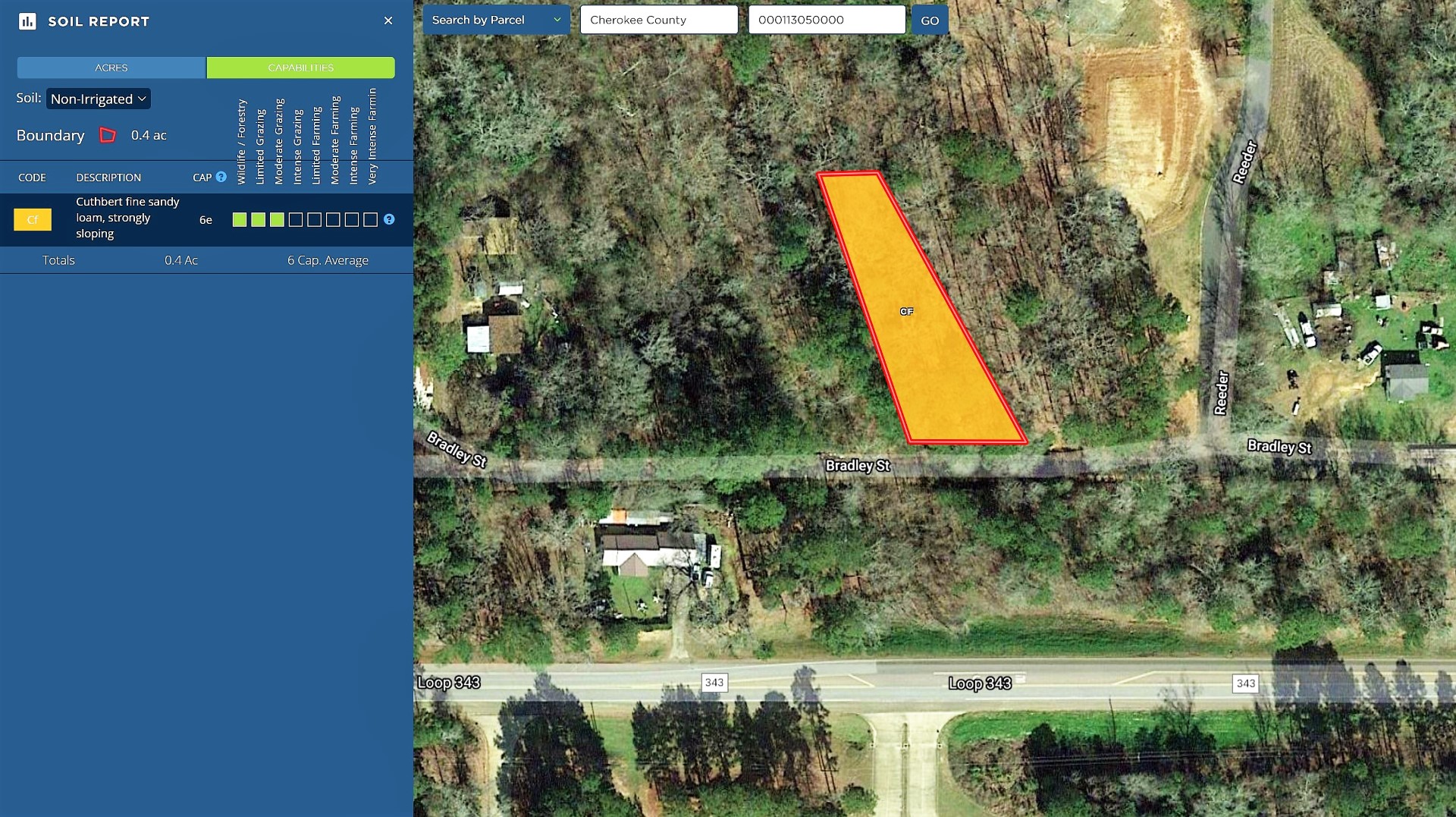 Search for detailed parcel information including; Elevation & Vegetation Maps, Ownership Information, Detailed Parcel Information, Crop History Map, Soil Survey Productivity Data, and more.