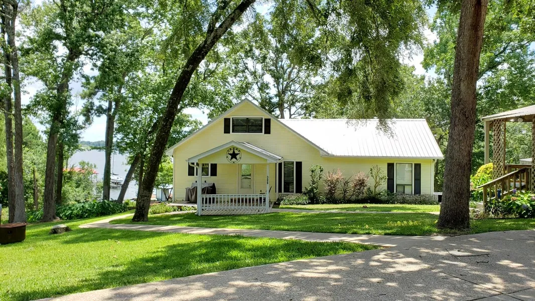 Enjoy BEAUTIFUL elevated open water views from this waterfront home for sale on 1.68 acres at Lake Palestine! Make this your getaway less than 2 hours from Dallas Tx and only 3+ hours from Austin and Houston. A generous concrete circle drive leads you to the front porch of this charming lake home. With approximately 1800 sq. ft. (and a perfect location to add an additional master suite lakeside), this 2 bedroom, 2 bath home with metal roof is move-in ready! Custom alder cabinetry in kitchen, stainless appliances and pantry. Kitchen opens to living/dining area with beamed vaulted ceiling and picture windows lakeside, providing breathtaking views! Wood stove in living area will heat the entire home in winter! Upstairs you will find a cozy bedroom loft with closet. Downstairs is the master bedroom and bath as well as additional guest bath and utility room. Master bedroom accesses deck and hot tub (negotiable). Additional access to the incredible elevated, tree shaded deck from the living area. Stairs lead down from the deck to the two stall boathouse with open & covered seating area & storage. A new 30' x 40' insulated shop has been added with an open air covered 12' awning, 220 amp and 3 roll up doors! The shop is also perfect for large gatherings of family and friends - the southerly breezes here are amazing! Additional carport with enclosed garage plus a storage building provide lots of space for vehicles and lake toys! RV carport on concrete slab too! Owner is an experienced builder/remodeler and it shows in every inch of this meticulous, well maintained property! Neighborhood amenities include clubhouse with pool, boat launch, playground, & tennis courts. If you are searching for a waterfront property with space to breath and views that take your breath away, this is it!