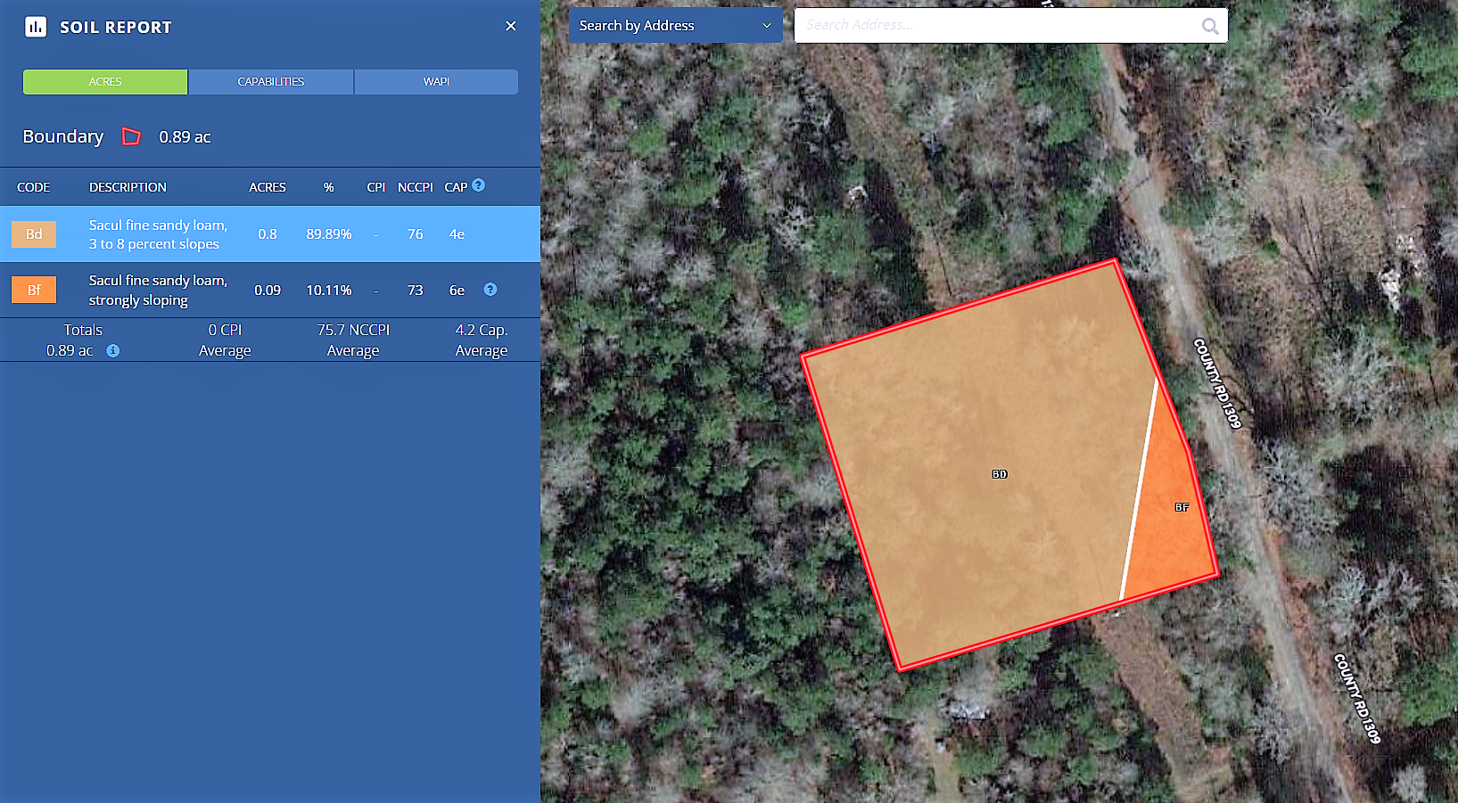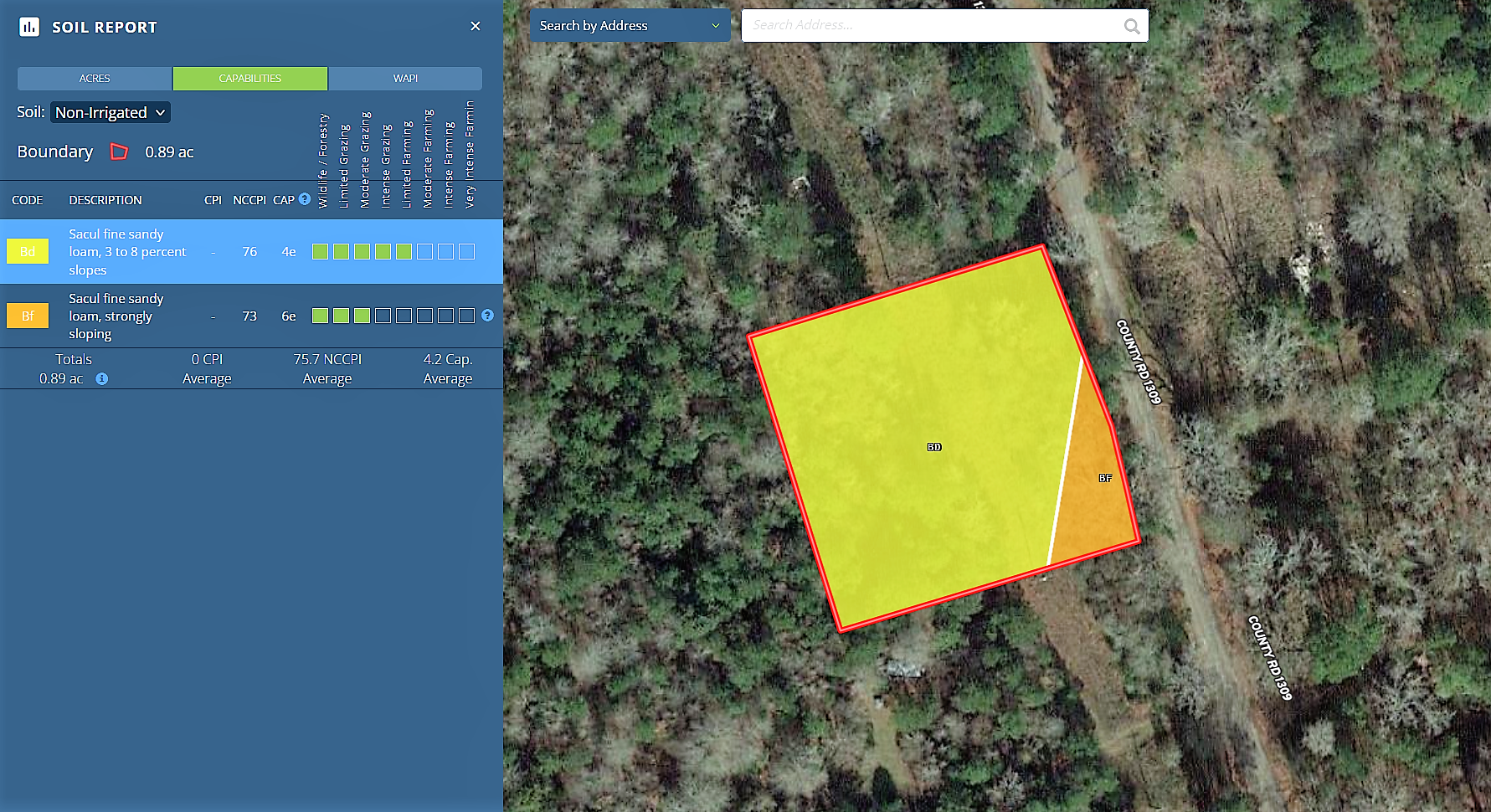 Search for detailed parcel information including; Elevation & Vegetation Maps, Ownership Information, Detailed Parcel Information, Crop History Map, Soil Survey Productivity Data, and more.