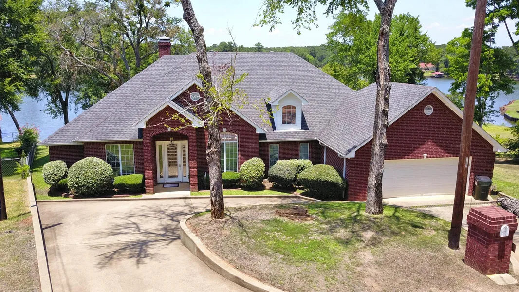 Waterfront Home in Chimney Creek subdivision on Lake Palestine! Floor to ceiling wall of windows overlooking the lake provides amazing views from the moment you walk in the front door! This well maintained 3 bedroom, 2.5 bath home with study has large & open living/dining/kitchen/bar area. Tile and engineered wood flooring though out the home allows easy maintenance lake living! The master bedroom is split from guest bedrooms, allowing privacy for all. Corner stone fireplace in living area as well as on large patio that includes an outdoor kitchen, water feature and hot tub! Here is where you will want to linger! Exceptional elevated views are enjoyed from this vantage point, with approximately 245' of shoreline. Good water depth of 6'+ when lake is at full pool. Boathouse has 2 lifts plus lots of deck space for entertaining lakeside. Located on one of the deepest bays on Lake Palestine, at the southeast side of Lake Palestine. Here you are protected from wave action and the fishing is great! Let your lake living begin!