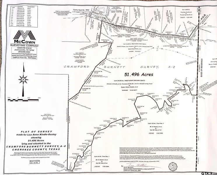 Approx 52 acres of all wooded land, this property is a beautiful, tranquil retreat, offering a wonderful combination of nature, privacy, and potential for outdoor activities or development. All Wooded.... Surrounded by nature, the land provides a stunning, natural environment with opportunities for outdoor recreation like hiking, hunting, or simply enjoying the peacefulness of the forest. The trees offer shade, wildlife habitat, and aesthetic beauty. Currently under timber ag (exemption). Running creek, never gone dry. Located at the dead end of a county road ensures ultimate privacy and peace, with no through traffic. This wooded and secluded property is ideal for someone looking for a peaceful retreat, with the potential for outdoor activities, wildlife, and privacy. Whether you're thinking of creating a personal escape, developing the land for future use, or simply enjoying the natural beauty, it offers a rare and valuable opportunity. NO MINERALS convey.