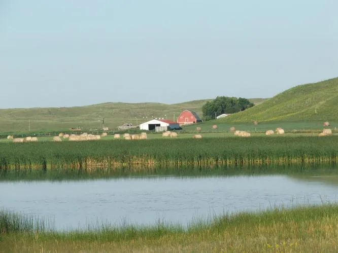 Land Use: The West Unit is the headquarters and wintering unit. It has approximately 600 acres of wet meadow around Coffey Lake. Leander Creek flows through the property. The improvements consist of a beautiful brick home overlooking the hay meadow and lake, a hired mans house, a newer steel pole building, calving shed, large older barn, shop and good set of working pens.