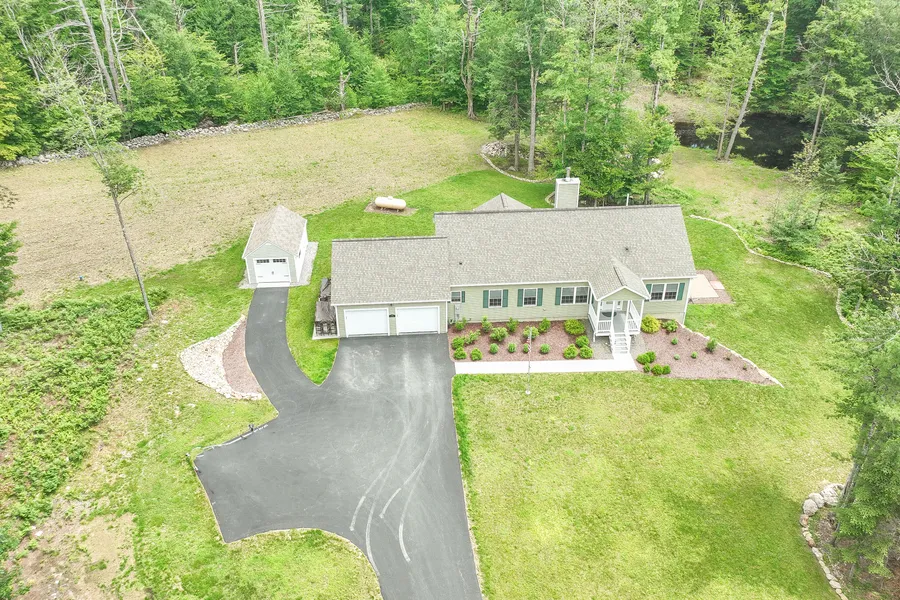 Better than brand new! This custom built one owner ranch is in immaculate, move-in condition! Many additional features have been added. Much of the 5 acre lot is cleared with stone edging around wooded features and a landscape highlight is a small pond. Buried utilities from the road. Open concept design has a front entry to a living area with cultural stone fireplace with built-in heatilator woodburner with glass door by Heartline in Jaffrey, NH. Dining alcove. Kichen with an expanse of counter space. Walk through the double sided pantry to access the concrete patio. A laundry room/mudroom, also off the kitchen, accesses the attached two car garage. Adjacent is a utility shed. The master bedroom has oversized closet and private bath with jetted tub, stall shower and double sinks. Two additional bedrooms and hall bath on the main floor. Lower level has slider to paver patio, recreation r...