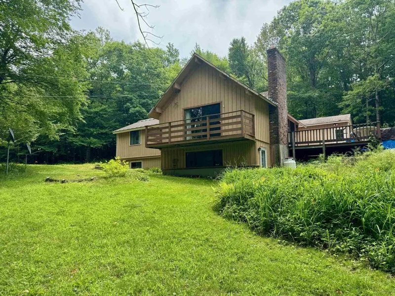 This quaint chalet with a cabin feel sits amongst the trees on a hill near the end of a dead end road for ample privacy, and just over a half mile from Lake Nubanusit. Keep warm with the gas fireplace on cool nights in the large living room with cathedral ceilings. Updated appliances in the kitchen with quartz countertops and lovely wood cabinets. First floor large primary bedroom, bath and laundry are all easily accessible for one floor living. Sweet open loft for overnight guests and full basement with walk-out that has been framed in for additional space and bath. Relax in the enormous hot tub on your very private deck on 2.7 acres of land this house feels like you are tucked into the trees. Great for summer family home, second home or for someone who wants privacy, just 20 minutes to Keene.