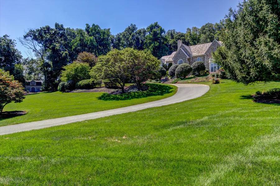 A spectacular custom English Manor home designed by Peter Batchelor ideally positioned within the seclusive rolling hills of Chester Springs is offered. Situated on 10.7 English gardened acres, a pool, gazebo, and stone patios, entice outdoor entertainment. This magnificent property offers a secluded tree-lined environment; a small brook/pond, and spring house, all shaded under mature landscaping truly complete the property's theme. Attention to detail abounds throughout, defined by custom mill-work-- including coffered/tray ceilings, built-in cabinets & European antiques. An imported Clive Christian kitchen is accentuated by a French Limestone floor/soapstone counter-tops, commercial grade Dynasty 6 burner range-- surely pleasing even the most discerning chef. The living room and great room contain cast stone fireplaces, including walls of windows, offering natural light throughout all seasons. The reoccurring stone fireplace theme continues onto the second floor's two bedrooms. A back staircase leads to a separate single bedroom guest apartment. The lower level serves as an English Pub Room alongside a Williamsburg Bar, stone hearth fireplace/ billiards room. Finishing the lower level is a full bath, laundry room, and office --outdoor access to patio/pool area. Consider the enchanting grandeur of a unique Chester Springs home with easy access to West Chester, Philadelphia and Wilmington.