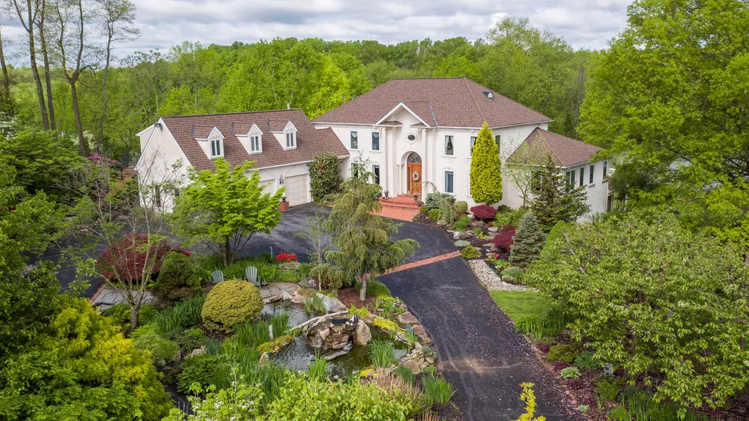 Stunning Lakeside Estate Home surrounded by 1,705 acres of preserved Marsh Creek State Park! Incredible views of the lake and natural habitat with direct water access! Situated on 1+ acres but feeling like you are on acres of open space and your own nature preserve! This 5 bedroom estate home blends modern luxury with rustic charm. The main floor has a grand center entranceway with 30 ft. ceilings and front to back views of the lake with an abundance of natural light. The living room is located in the back of the house and includes Brazilian Cherry hardwood floors, cathedral ceilings, gas fireplace and custom surround sound system with access to the deck for outside entertainment. Large Deck with Block Pillars and Rod Iron Railing span the entire back of the house. Gourmet eat-in kitchen has granite countertops and all the modern amenities for the most discerning chef. Pocket door leads to a formal dining room allowing for an intimate dining experience. A first floor Primary Bedroom has a gas fireplace, primary bath with jacuzzi tub, walk-in closet and plenty of space to enjoy incredible water views. Completing the first floor is a large mudroom/laundry and powder room with access to the detached garage. A kitchen staircase leads you to the second floor where there are two additional bedrooms with en-suite baths. The lower level has a large family room for entertainment with a stone fireplace and access to a patio overlooking the lake. Separated with French doors is a home theatre with a projection screen and tiered level seating that allows for an enjoyable movie experience. Two additional bedrooms with a Jack & Jill bath complete the lower level living space. There is an additional storage room with all the operating systems in the back of the lower level. Oversized three car garage with living space above for guests or potential in-law suite! Magnificent grounds include flagstone & brick walkways, boulder gardens, meditative pond and fountain with a 360 degree waterfall. There are many specimen trees (cherry blossom) and a fruit orchard with apple, pear, peach trees and berry bushes to name a few. A boat house completes the outdoors for your enjoyment! 4 Matisse is the perfect lakeside escape!! Close proximity to restaurants, shopping, PA turnpike and much more!!