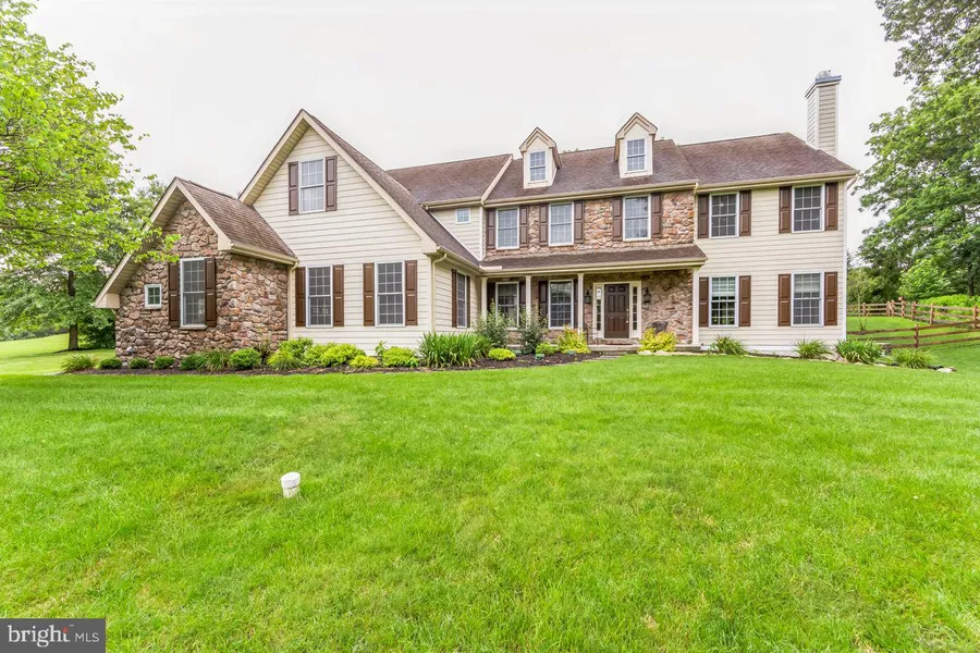 Welcome to 15 Rico Circle. This beautiful 5 bedroom, 3.5 bath home is located in the wonderful community of Estates at Hideaway Farms, Downingtown. This beautiful home, built by Southdown, is the Devon Farmhouse model. Situated on a 2.5 acre lot at the end of a quiet cul-de-sac, 15 Rico offers a new Gunite 750 sq ft Saltwater pool, trex deck and a large covered porch. Sitting behind the back yard is an additional 16 acres of protected land. As you walk to the front door of the home, you are greeted with a wonderful covered porch looking out to tons of open space. Entering through the front door into the home you are greeted with a large bright entry with hardwood floors and a wall of three doors to the back yard. To the left is a large dining room with a new modern chandelier and chair railing. Across from the dining area is the living room with plenty of windows and a fireplace for those cold nights in the winter to snuggle up to. The Living room offers crown molding, a marble fireplace and French doors leading to a nice size Office/Den/Study. The room is perfectly situated to close the doors and have a perfect space for working when home. From the study is a large closet for storage and a well proportioned half bath. There is a spacious kitchen offering a large center island with seating, 46" cabinets, stainless steel appliances, recessed lighting, a pantry closet, quartz countertops, and a two sided butlers pantry with glass front cabinetry. The Devon Home design offers a wonderful sunroom right off the kitchen that is ensconced in windows allowing all the southern light in all day long. Also off the sunroom is a door leading to the back deck and a new beautiful pool. Off the kitchen and sunroom is a large open Great Room with a partial cathedral ceiling and a second gas fireplace. Completing the first floor is a side door entry with a new 6 window door and mud/coat room area and access to an oversized 3 car garage with shelving and a separate entrance into the garage. As you enter the upstairs of the house from the front staircase, yes, there are two sets of stairs, you first enter to the primary bedroom suite with a sitting room and a large master bedroom. Additionally there is a second smaller bedroom suite with a tiled bath, two bedrooms that share a Jack and Jill bath with double vanity, and a convenient laundry room with cabinetry and a wet sink for those messy projects. There is an additional larger bedroom that could either be used as an additional bedroom or even a great hang out room for entertaining or gaming. Many upgrades are offered in this home. The additional attention to detail in this home includes arched doorways, crown molding, recessed lighting, custom window treatments, built-in speakers, highly efficiency HVAC new light fixtures, new side door with a keyless entry, a large low maintenance deck on the back of the home with a partially covered porch for all weather entertaining and most of all a gorgeous 8ft deep concrete swimming pool with a spa as well! The Hideaway Farms community offers walking trails for the community. This home is just a short drive to tons of activities at Marsh Creek State Park as well as easy access to major commuting routes, awesome shopping, and always excellent dining. 15 Rico Circle is ready for you! Home goes on the market 7/15/2023. Open house on 7/16/23 12-2:30pm.