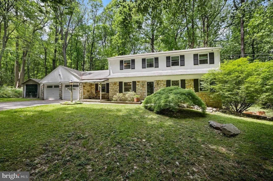 Welcome to 17 Shamrock Hill Lane, a beautifully renovated home nestled on 2.2 wooded acres in Malvern, PA. This exquisite residence offers an idyllic blend of privacy and convenience, perfect for those seeking both tranquility and easy access to amenities. As you enter, you'll be captivated by the light-filled open floor plan that seamlessly integrates the living room, family room, and kitchen with hardwood floors. The spacious recently updated kitchen features a charming breakfast nook and sliding doors that lead to a newly built deck and grassy lawn, ideal for outdoor entertaining. Next to the kitchen is the formal dining room with space for large gatherings. Completing the main level is an office which can serve as a 5th bedroom, and a powder room. Upstairs, you will find a primary suite with private bath, 3 more generously sized bedrooms, a full hall bathroom, and a convenient laundry area. The total finished living space measures 2,384 sq ft, with an additional 1,100 sq ft of unfinished walkout basement, offering endless possibilities for storage, finished family room or creating your dream workshop. The property includes a two-car attached garage and a one-car detached garage, providing ample space for vehicles and additional storage. Two storage sheds offer even more room for your belongings. Situated in the award-winning Great Valley School District, this residence is just minutes away from Route 202, Exton Mall, King of Prussia, Malvern Borough, and various other attractions. Experience the best of both worlds - serene, wooded surroundings with easy access to shopping, dining, and entertainment.