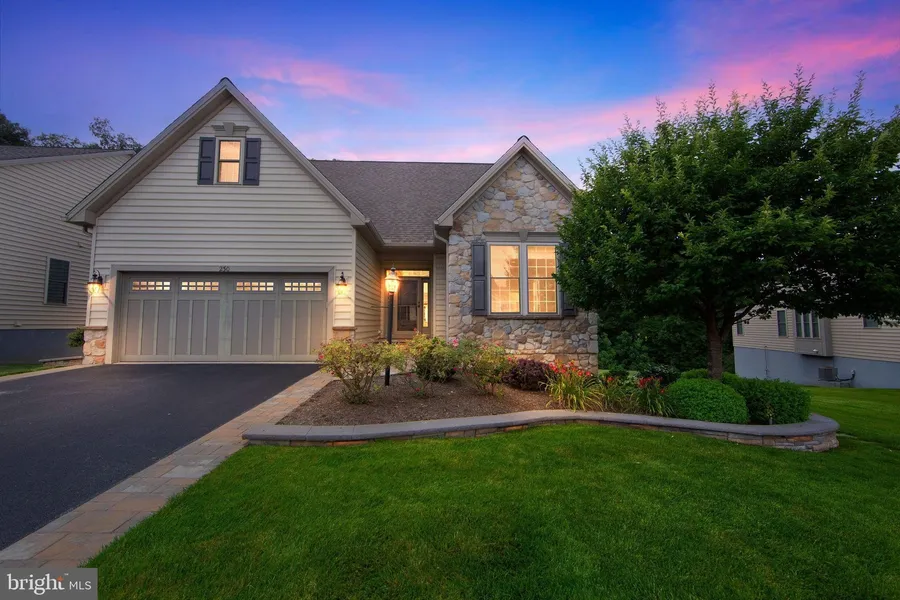 Prepare yourself to be impressed! This home shows like a model and the private lot can not be beat! Totally refreshed with thoughtful upgrades and exquisite details, if you're seeking to move to a 55+ community without sacrificing the features and space of a single-family residence, look no further. The size of this home is generous including areas for family gatherings, guest accommodations, a home office, entertainment and hobbies. Enjoy spectacular views and expansive outdoor spaces designed for relaxation and socializing. Only an out-of-state move has made this pristine, like-new property available. As you arrive, you'll notice the evident pride of ownership in this meticulously cared-for home. Enter through the gracious foyer, where fresh paint, gleaming hardwood floors, custom window treatments, abundant recessed lighting, and elegant oiled bronze hardware welcome you. At the heart of the home lies a grand, modern open area, featuring a spacious kitchen with handsome, creamy cabinetry, exquisite quartz countertops, stainless steel appliances, a generously sized pantry, and an expansive center island, complemented by an inviting dining area, complete with a cozy gas fireplace and custom built-ins. This space seamlessly flows into the expansive Family Room area which expands out to a low-maintenance TimberTech deck with stylish black railings, overlooking serene trees and providing access to the private backyard. Arched doorways add character as you proceed to the elegant first-floor primary suite. The primary bedroom features a beautiful tray ceiling with uplighting and a ceiling fan, a transom window, and a custom Closets By Design walk-in closet. The primary bathroom is spacious and bright, with an oversized shower, soaking tub, updated vanity and extra cabinetry. Another main floor room, enclosed by glass French doors, serves as a quiet home office or additional bedroom, accompanied by a full guest bathroom. A convenient laundry room and immaculate two-car garage complete the main floor. Upstairs, you'll find a large open loft area, complete with its own bedroom, full bathroom, and a stupendous custom closet. This level is ideal for a live-in relative, guests, or as a separate area for quiet activities, reading, crafts, or an additional home office. The lower level is a true showstopper, offering expansive space for entertainment and recreation. Unique wood flooring leads you to a custom wet bar with a sink, wine and beverage fridges, custom cabinetry, and shelving. This area also features another gas fireplace, custom built-ins, and plenty of room to watch the big game or enjoy family time. A separate room can be used as a guest bedroom, hobby room, or additional home office. There is another great full bath and two generously sized storage rooms completing the lower level. Step outside to the charming rear paver patio with a pergola, perfect for savoring the serene backyard views and sounds. This home was constructed with upgraded landscaping and hardscaping, gutter guards, an enhanced exterior lighting package, sprinkler system, alarm system, and water softener, leaving no detail overlooked. Located in the desirable Honeycroft Village community, residents enjoy access to a pool area, fitness center, bocce ball, horseshoes, a firepit and community garden. With lawn care, snow removal, and trash services taken care of, you can move in and start enjoying life. Nearby, you'll find restaurants, farmers' markets, golf course and shopping. Schedule your private tour today!