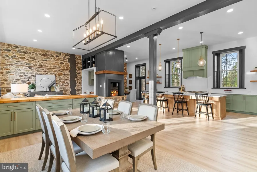 This historic property was originally constructed in 1887 as the Franklin School and has been fully renovated into a unique residence that blends preserved architectural elements with modern finishes and mechanicals. The main level features an open floor plan with 12' ceilings, exposed stone, original beams and posts, and reclaimed wood throughout. A full wall of Low-E glass windows provides abundant natural light and views of the surrounding mature trees. The kitchen is equipped with an ILVE 48" dual-fuel range with seven sealed burners and griddle, ZLINE hood, Frigidaire Professional refrigerator and freezer, and a 4'x12' island with sink and under-counter refrigerator. A centerpiece gas fireplace and direct access to the massive deck complete this level. A custom stair tower leads to the second floor, which has the primary suite, laundry and second bedroom. The private primary suite i...