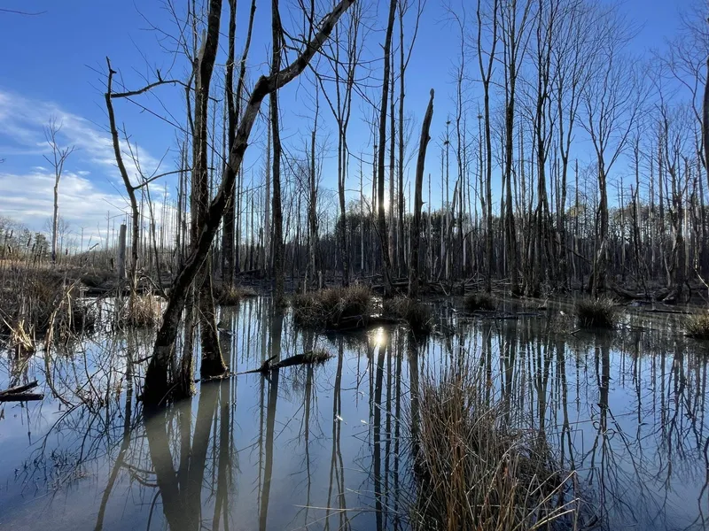 Oak Hill Tract is a diverse forested property in a rural setting just northeast of the town of Chester. About 60 acres of gently sloping uplands are covered in loblolly pine now about 4 years old. About 25 acres of old oaks, yellow poplars and other hardwoods stand along streams and in large upland patches. Rocky Creek flows through the tract near its western end. Beavers have created a wetland along the creek that covers about 10 acres with water, dead tree snags and bottomland hardwood.