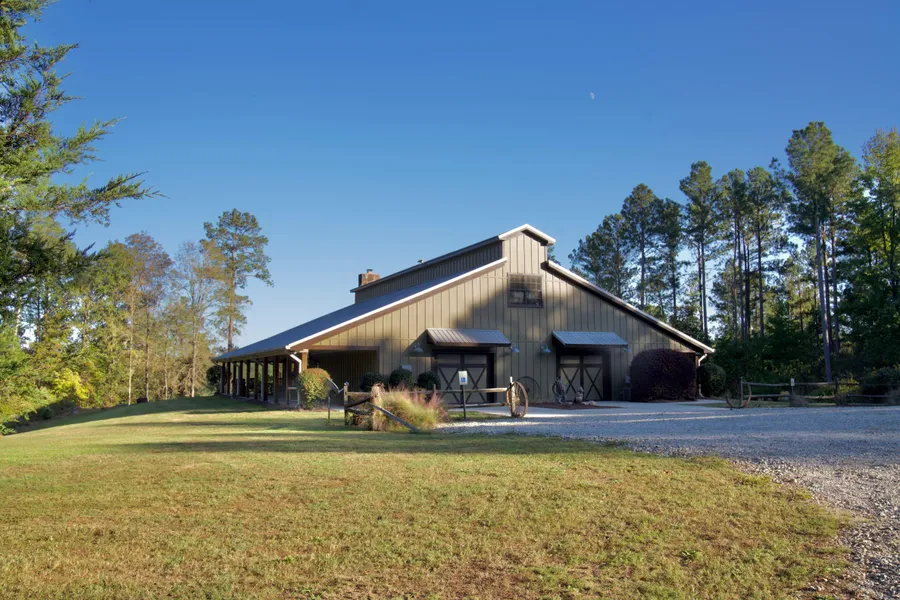 You're welcomed into the property down a long gravel drive through towering piney woods, passed the bass pond and into the heart of the property. Perched atop a high bluff, with commanding sunrise views, is the barndominium style lodge. This well appointed 5 bedroom 5 bathroom lodge has fabulous wood finishes throughout, maintains comfortability with a very high-end feel, and is the perfect retreat for family and friends. Plus, there is ample storage for UTVs, farming equipment and hunting gear. This high quality, low-maintenance structure boasts fabulous upgrades throughout and is being offered turnkey with furnishings included.