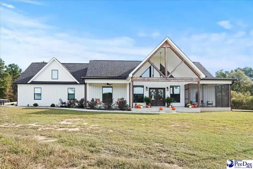 Welcome to this exceptional custom-built home, completed in 2023 and thoughtfully designed with timeless craftsmanship and modern comfort. Every detail of this two-bedroom, two-bath residence was carefully curated to offer both beauty and functionality. Step inside to an open-concept living space featuring soaring vaulted ceilings adorned with elegant wooden beams and a warm glow from the gas log fireplace. The chef s kitchen is the heart of the home, showcasing a stunning oversized island that comfortably seats six, a walk-in pantry with built-in shelving, and top-quality appliances all included. Retreat to the serene primary suite, where a luxurious free-floating soaking tub and separate walk-in shower creates a spa-like experience or step outside into your private screened in porch that is surrounded by nature and gentle wildlife. Outdoor living is equally impressive, offering two screened-in porches and a charming covered front porch each with ceiling fans perfect for enjoying morning coffee or evening sunsets overlooking the tranquil landscape. Additional features include: 28x30 attached garage with pull-down attic stairs and a large unfinished bonus room above 30x40 detached workshop with concrete floors, insulation, shelving, workbenches, and dual 10x10 roll-up doors ready for power with its own meter Tankless water heater, gas stove, and premium finishes throughout Surrounded by mature pines, muscadines, blackberries, and a pecan trees Property borders Big Bear Creek, offering privacy and abundant natural beauty This property perfectly blends rustic charm with modern luxury an ideal retreat for those who value space, craftsmanship, and a connection to nature.