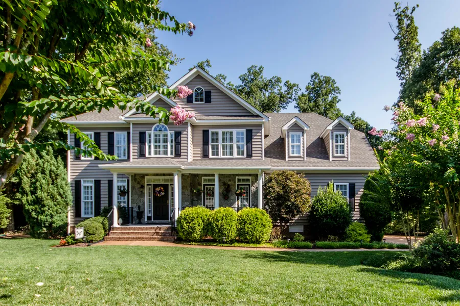 A STUNNING home, outside & inside. The front porch is welcoming with a cozy sitting area. A stone entry leads into an open, 2-story foyer with a unique double stairway. Formal Living Room & Dining Room have hardwood floors. Large Family Room opens onto a Screened Porch & to the Dining Area of the Kitchen & the Kitchen & Dining area have hardwood floors. All the windows have Plantation Shutters. Granite counter-tops in the Kitchen match the built-in cabinets in the Dining Area. One of the built-in cabinets has a wine cooler. Huge window overlooks the raised patio & beautiful, private back yard. Upstairs are 4BR & 2BA plus an open staircase to the unfinished attic. The Master Bedroom Suite is absolutely beautiful. There is a sitting area (office, nursery? Library) The Master Bath is a dreams The current owner designed & remodeled this bathroom, it is one of a kind. The enormous walk-in Master Bedroom Closet was designed by professional closet specialists. The other 3BR are very ample in size. One is used as an office. The hall bathroom features an antique sideboard vanity. More features include an attached garage, a finished room over the garage and double wide aggregate driveway.
