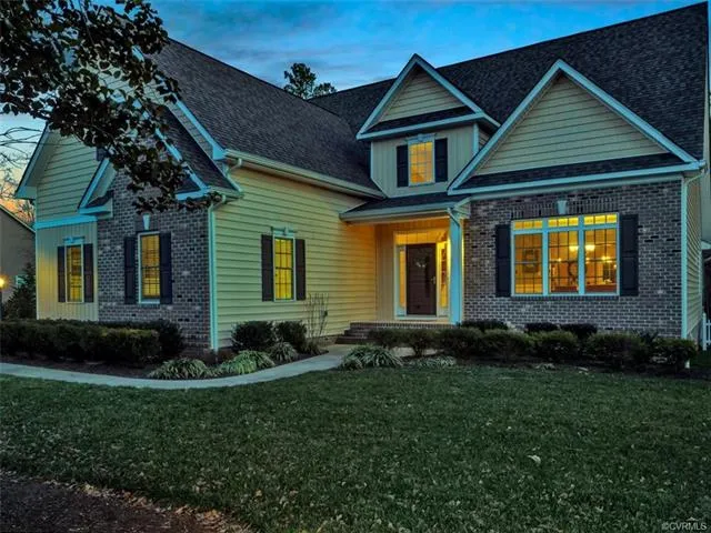Welcome Custom Home. The walkway meanders in front of the brick faced elevation before arriving at the front door of this beautiful CoynerCo Custom Homes 3500+ sq ft 5 bed 3.5 bath home. Home boasts an Upstairs and Downstairs Primary w/ en suite. Light and ceiling fans in all bedrooms and granite counters are in ALL bathrooms. 2-story foyer is flanked by an open, large formal dining room w/ 3 feet wainscoting and double crown molding that leads to a wonderful kitchen. Cabinets and storage Abound in this airy kitchen; double-oven, high ceilings and a large island that assists in offering plenty of granite topped counter space and storage. The upstairs primary features an en suite and is separated from the other three bedrooms by a hardwood covered hallway. With an area to play catch in the backyard yet still enough trees to sit and enjoy privacy from your large screened porch, this home is situated on 1 acres of well manicured landscape, 1-year of Virginia Green lawn care. The long concrete driveway has been upgraded w/ an extended parking pad. If the power goes out, this house is juiced by a 22k Generac whole house generator. The Highlands is calling, hear the call. Welcome home