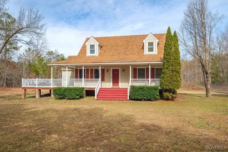 Country living at it's finest! This beautiful Cape Cod home has it all. As you drive up to the property, you instantly feel at peace on it's sprawling 5+ acres of space. Brand New 30 year dimensional roof! When you walk in, you are greeted by a cozy floor plan, complete with a large eat-in kitchen, primary bedroom with two closets and a bathroom that features a double vanity and shower all on the main floor. As you walk upstairs, you will find two more bedrooms and a full bathroom. This home boasts a laundry room off of the spacious two-car garage that connects to the home in addition to a beautiful country porch that wraps around the home. Schedule your showing today - this country home oasis won't last long!