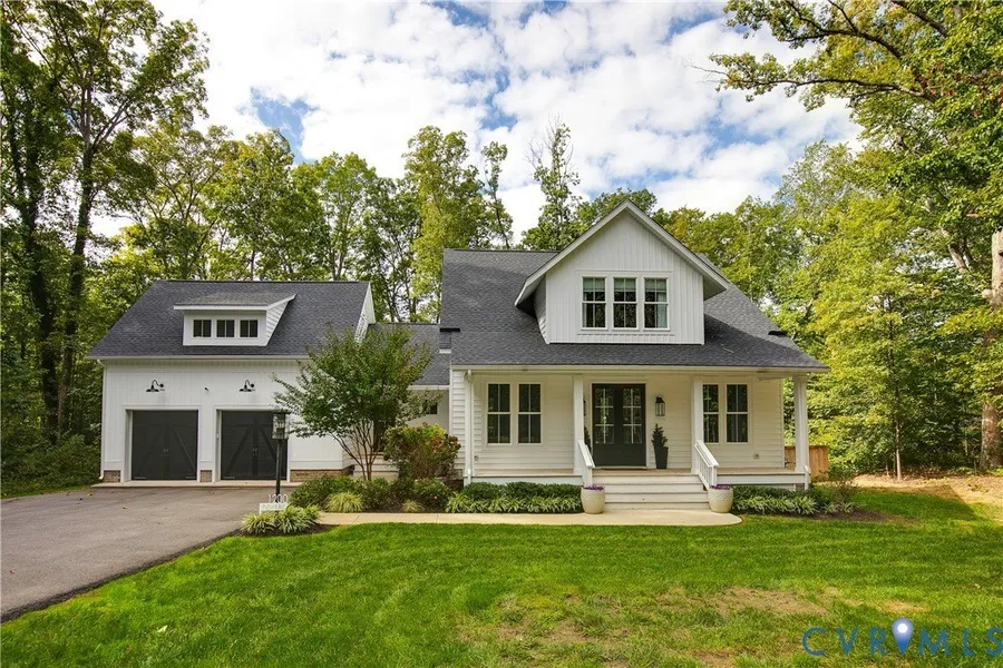 Welcome to this stunning Bon Air home - a 3-bedroom, 2.5-bath retreat privately set back from Buford Road on over an acre and a half with a long, secluded driveway. Built in 2021, this home blends modern elegance with thoughtful design. Inside, you'll find 9-foot ceilings, designer wallpaper and lighting, and luxury vinyl plank flooring throughout most of the home. The first floor features a formal dining room with picture frame molding, a private office with French doors, and a spacious family room with built-in bookshelves and a gas fireplace, open to a gorgeous chef's kitchen with a large island, quartz countertops, marble backsplash, high-end appliances, walk-in pantry, and bar area. A full-length front porch and screened-in back porch overlook the beautifully landscaped grounds and fully fenced backyard, complete with a fenced garden bed and patio. Upstairs, the exquisite primary suite offers a vaulted ceiling, custom walk-in closet, and a spa-like marble bathroom with soaking tub, seamless glass shower, dual vanity, and private water closet. Two additional generous bedrooms share a stylish full bath, while a large rec room above the garage-accessible by a separate back staircase-offers the perfect space for a playroom, media room, or home gym. With all systems and finishes new in 2021 and a spacious 2-car garage with a dog washing station, this home offers luxury, privacy, and convenience in one perfect package-just minutes from Bon Air's popular restaurants, coffee shops, and grocery stores.