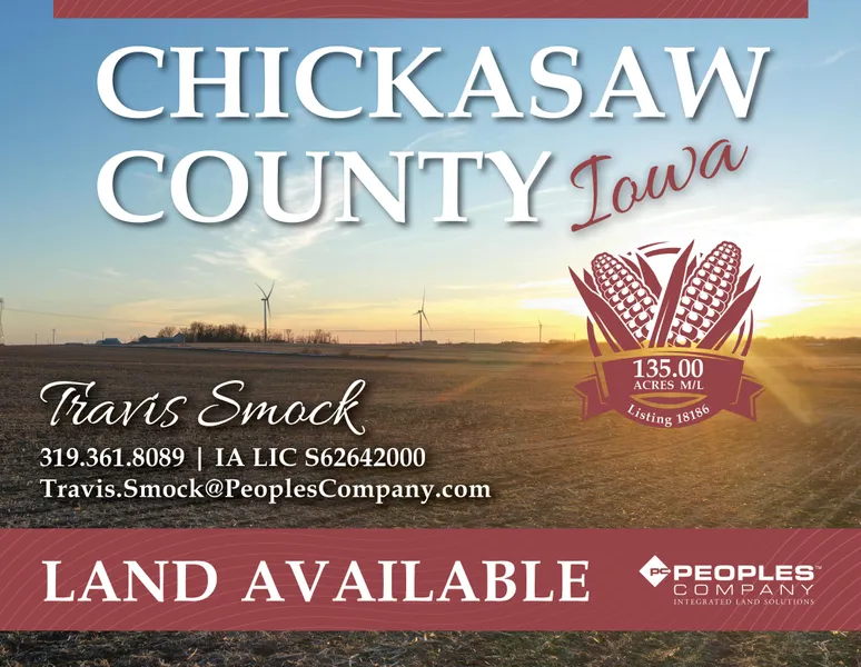 Chickasaw County Farmland Available! Presenting 135 acres m/l of productive farmland located north of New Hampton, in Chickasaw County, Iowa. This farm consists of 126.52 FSA cropland acres with an average CSR2 rating of 75.9, offering steady productivity in a well-established agricultural region of northeast Iowa. The land is designated as NHEL (Non-Highly Erodible Land), providing flexibility for future management practices. This desirable neighborhood has multiple grain outlets, including the nearby Homeland Energy Solutions ethanol plant in Lawler. It presents an excellent opportunity for farmers and investors to expand their holdings in a reliable and productive area. A 345 kV MidAmerican transmission line runs through the far southwest corner of the property, creating potential for future solar or wind expansion projects. There is an easement in place with the nearby Chickasaw Wind...