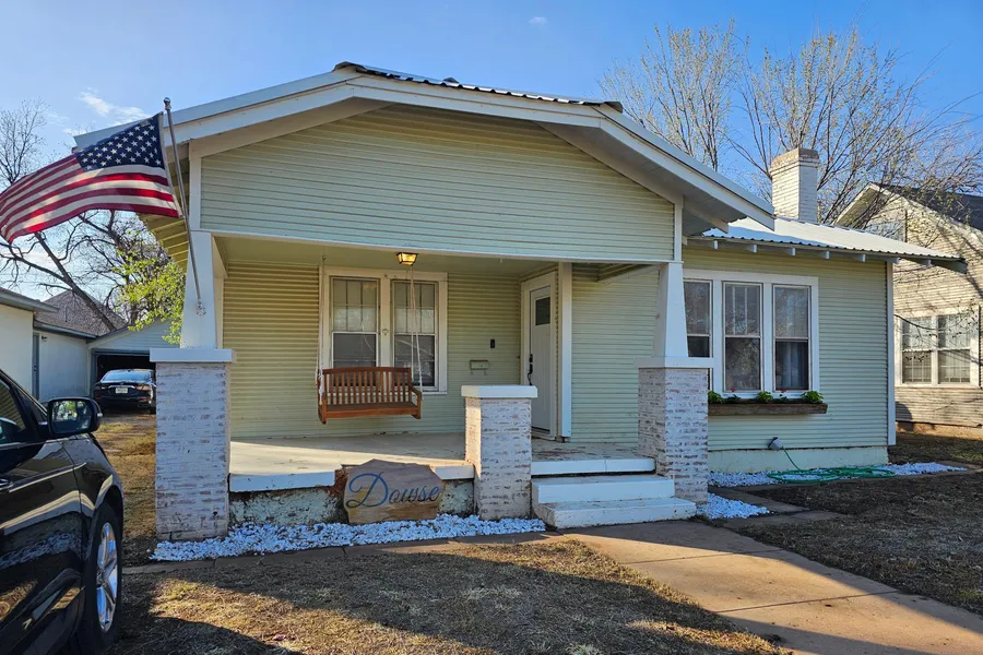 "TRANQUIL COTTAGE"- Completely updated and remodeled within the last 2 years, this Home is a rare find. Modern comfort on the inside while maintaining it's cottage charm on the outside. The covered front porch welcomes you into the family living area, highlighted with wood burning fireplace. Living, dining, and kitchen are all one open space. Kitchen features new cabinetry, built-in dishwasher, built-in microwave and an island with ample seating for dining. All three bedrooms are generously sized with nice sized closets. Back Bedroom could easily serve other purposes such as office, private living area, craft room, etc. Other highlights are central heat and AC, metal fenced backyard, metal roof, tankless gas water heater, storage shed/shop, and detached garage, Near Elementary School.