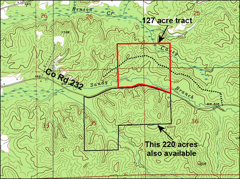 An adjoining 220 acres across the road is also available (see topo for details)