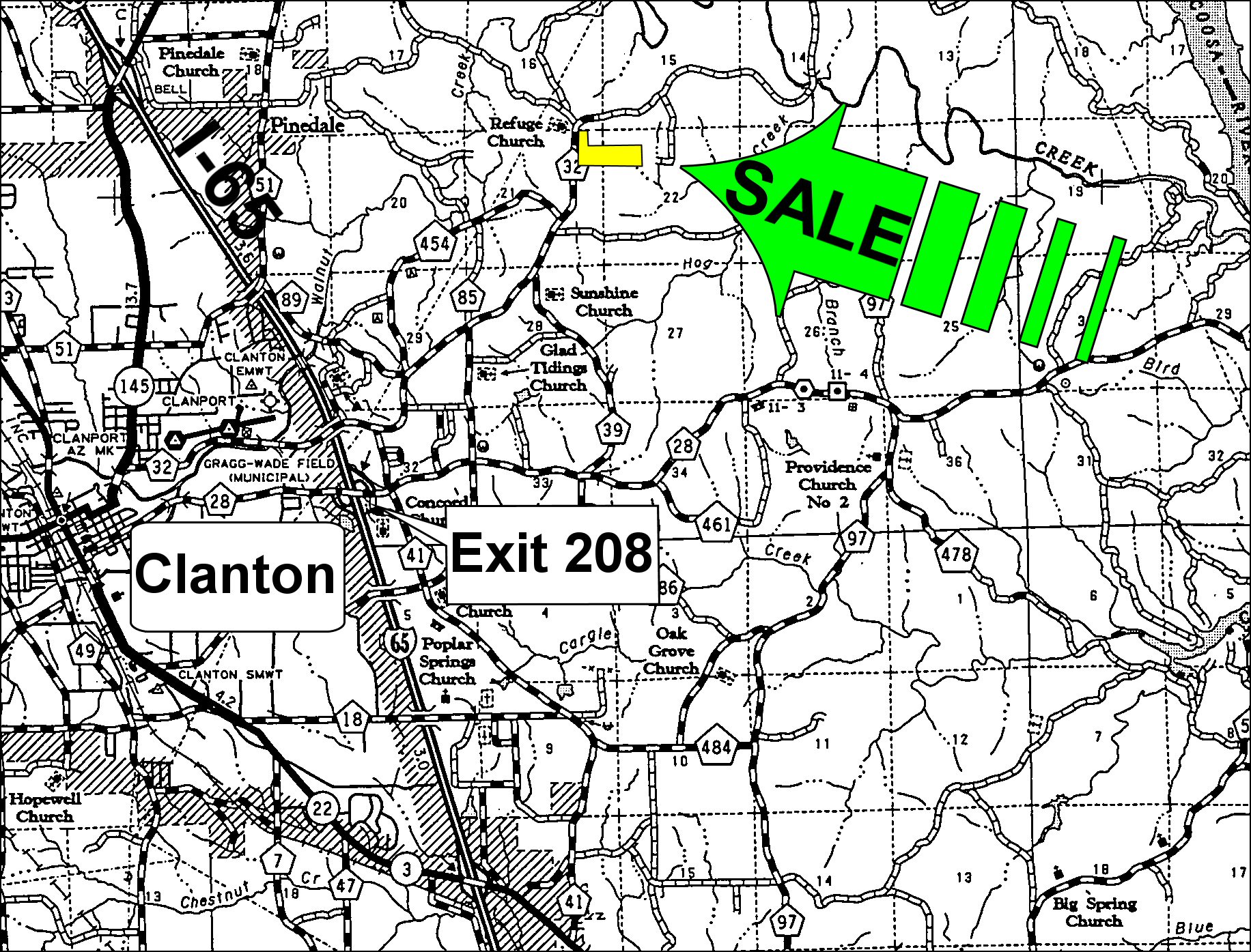 Located 3 miles east of Clanton, AL, about 5 minutes to I-65, Exit # 208 & 5 miles to Lake Mitchell