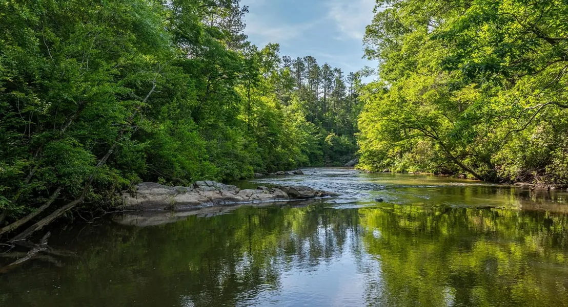 As you navigate the property, you come upon strategically placed food plots, designed to attract and sustain a diverse array of game. These plots, coupled with well-positioned shooting houses, promise a hunting experience like no other. The topography of the land is nothing short of breathtaking. With rolling hills reminiscent of the Appalachian foothills, the landscape offers a variety of terrains and vistas along with 1.4 miles of frontage along the crystal-clear Chestnut Creek, which meanders its way to Lake Jordan just 1.5 miles downstream. This pristine waterway adds a touch of magic to the land, inviting you to fish, kayak, or simply enjoy the beauty of its sparkling waters.