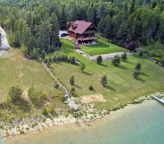 FANTASTIC WATERFRONT HOME looking North at Canada! This beautiful custom built home offers a breathtaking view of the St. Mary's River, 150 ft. of shoreline, up close viewing of large iron ore freighters plying the waters between Lake Huron and the Locks in Sault Ste Marie. This home has a nice full length paved driveway, a large 2.5 car garage, 2,600 sq. ft. of living space, full length trex decks on the 2nd and 3 levels, 2 stories high on a full walkout finished basement, 3 bedroom, 2 baths, 2 gas log stoves, wall to wall water view windows on all three levels, and a master bedroom view to die for! This home is well maintained, built with quality materials throughout and workmanship needs to be seen to be appreciated.