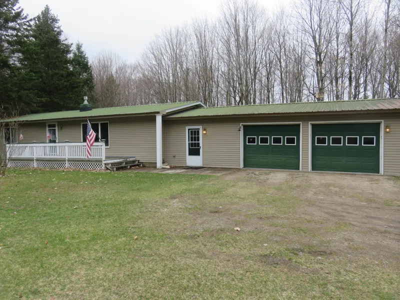 Simply Delightful, youll find this turn key low maintenance Ranch style home with attached two car garage along with 2 bedrooms and 1-1/2 baths. Home has nice size breezeway connecting to two car garage. Kitchen has been completely remodeled and has a nice island and sliding glass doors in dining area to back deck facing a wooded private back yard. The Living room is large in size and has a propane gas fire place, beautiful crank out Anderson windows and nice custom entry door with carpet throughout. The Master bedroom is also large in size with his and her closets and will fit a king size bed easily. Lots of additional storage with a detached 16 x 24 gar with electric and two additional sheds for all your storage needs. Property sits just outside Trout Lake, a Great recreational area